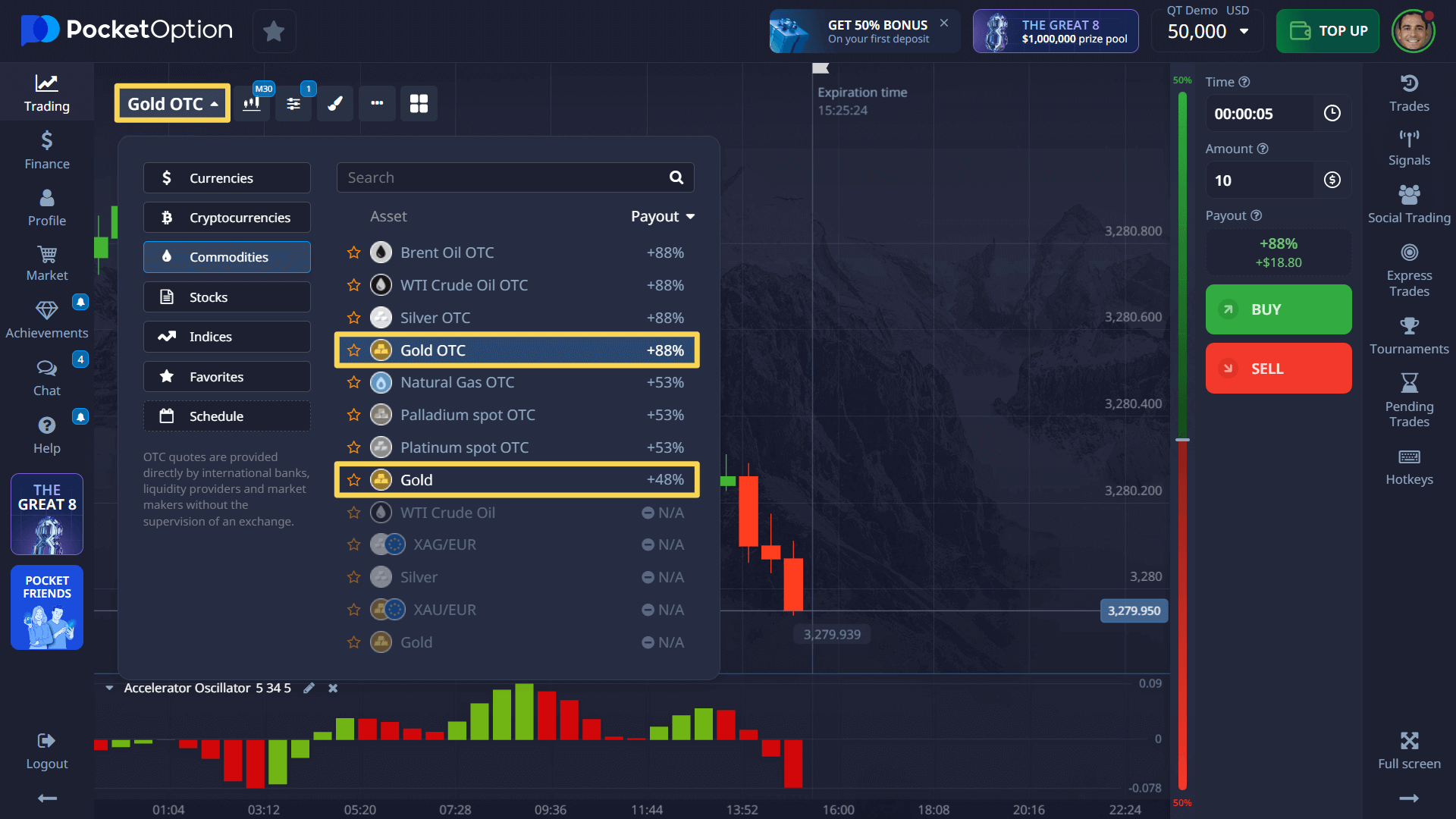 Pocket Option can enhance your gold trading strategy with its intuitive interface, quick trading capabilities, and comprehensive analytical tools. You can set alerts for price changes to facilitate timely trades, use technical indicators for market analysis, and execute trades rapidly to capitalize on market movements.