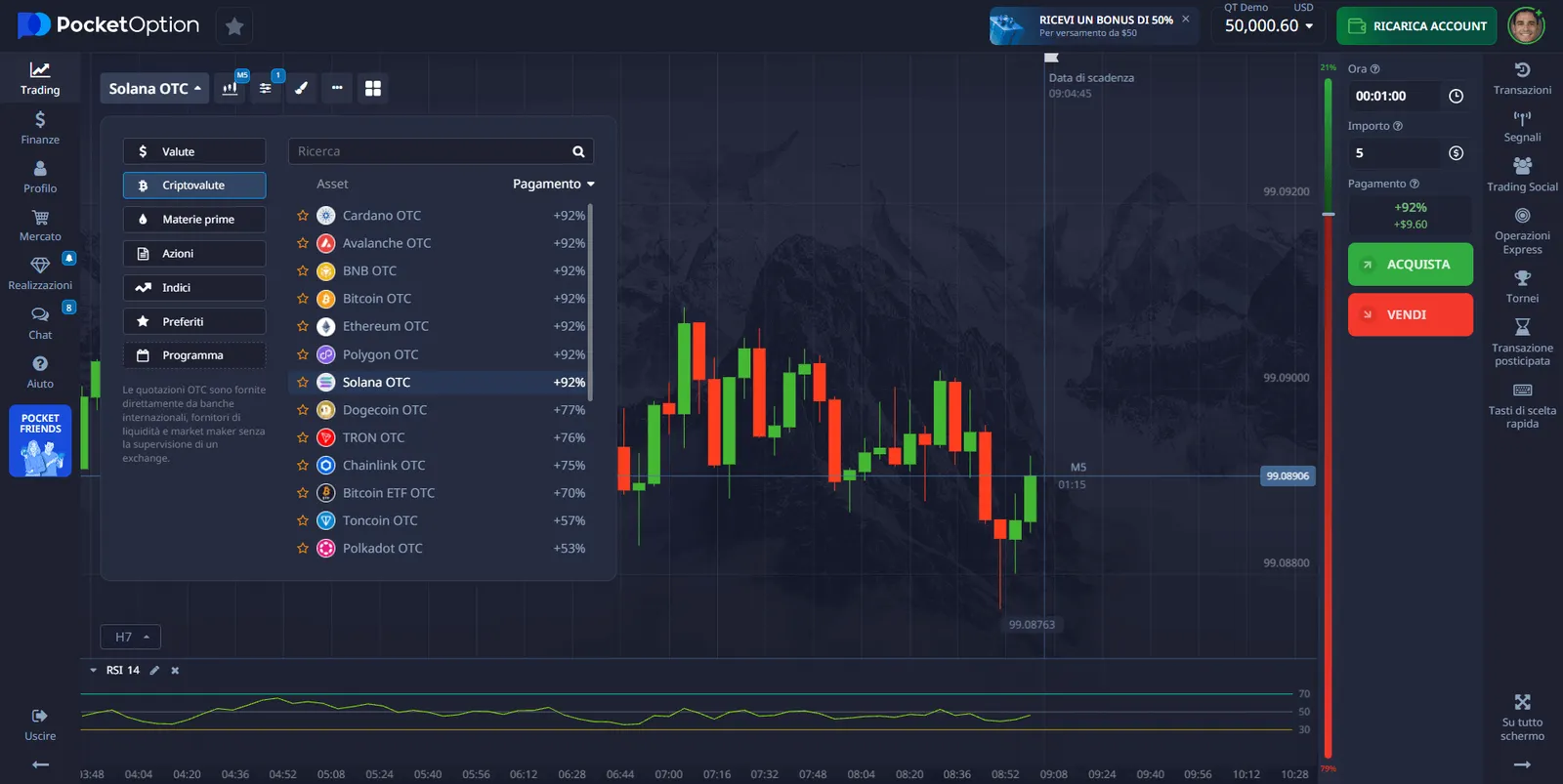On the Pocket Option platform, traders can perform quick operations by predicting whether Solana (SOL) value will increase or decrease over time. Let’s look at a real example of trading SOL with a step-by-step explanation.
