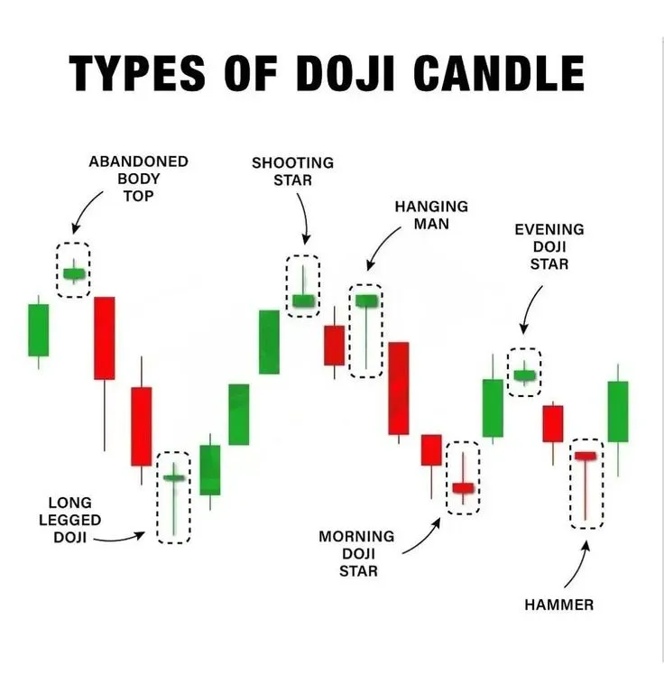 A Doji is a candle where the opening and closing prices are almost identical, forming a very short body. It indicates market indecision, where neither buyers nor sellers could gain control. A Doji often signals a potential trend reversal, especially if it appears after a prolonged move or at key levels.