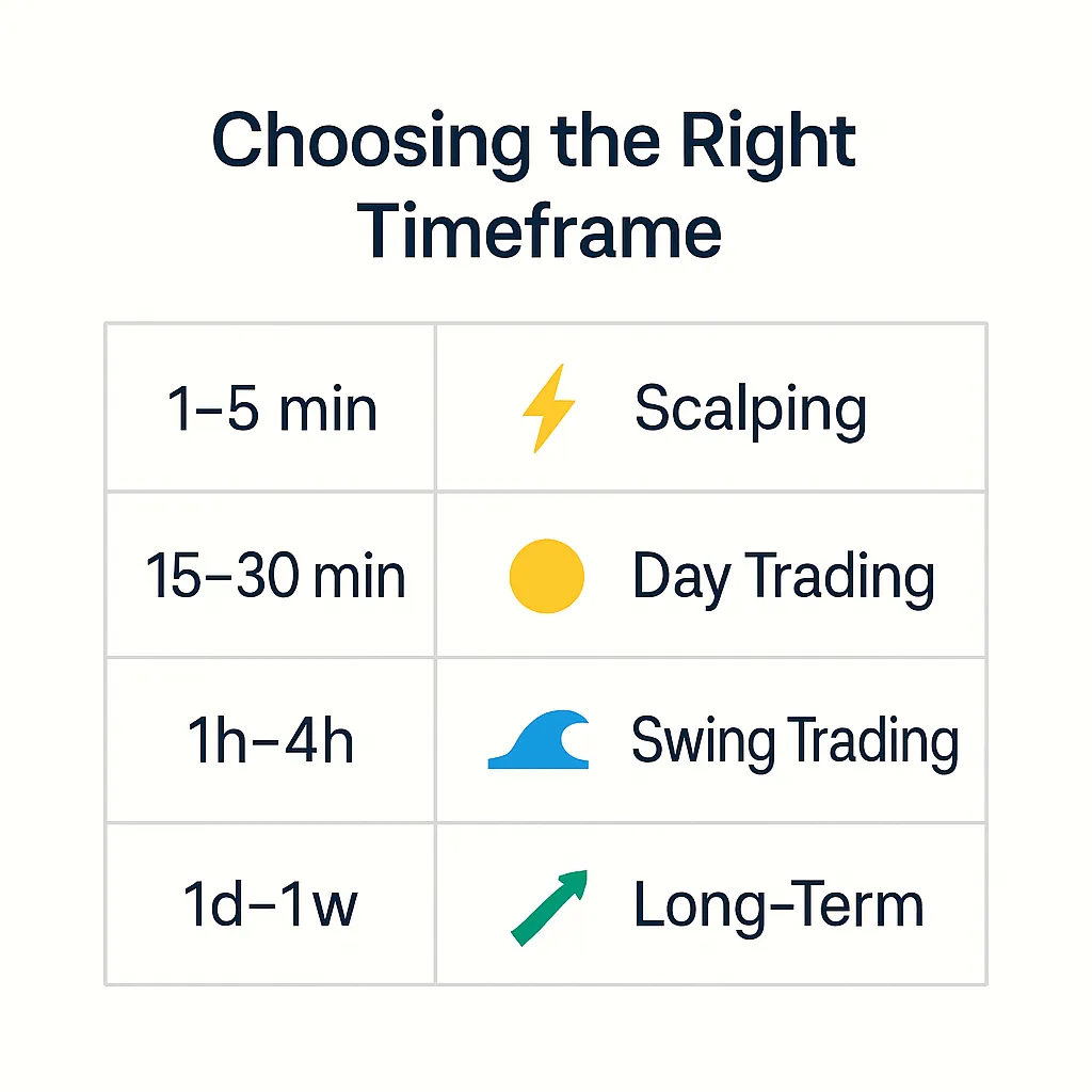 The most effective timeframes depend on trading style - ranging from 1-minute charts for scalping to daily charts for position trading.