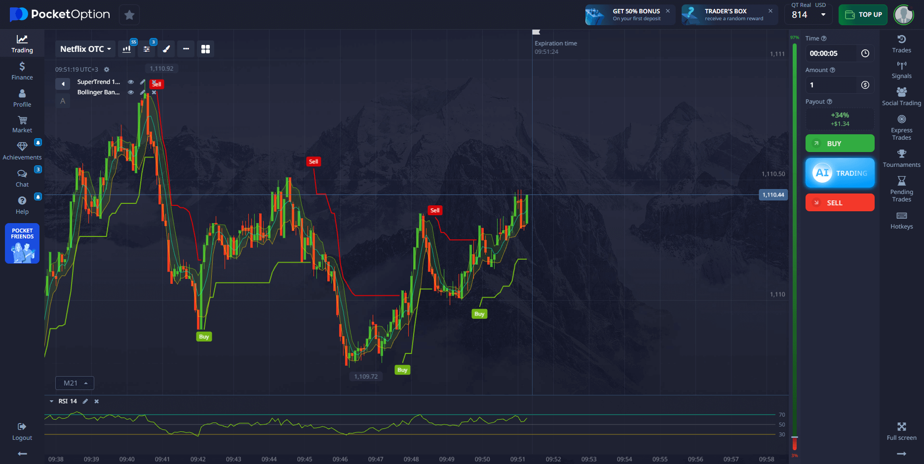 Pocket Option offers a streamlined environment for short-term trading, allowing users to forecast price movements of assets like Netflix (NFLX) without owning the actual stock. Instead of traditional buy/sell mechanics, trades are based on predicting whether the price will go up or down within a selected time frame — starting from just 5 seconds on OTC assets.