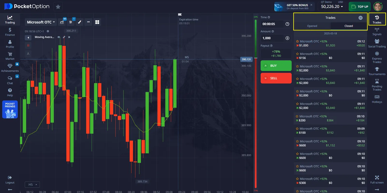 It’s the same platform, same features, same $50,000 demo balance. Whether you’re on a coffee break or commuting, you can place your first trade in under a minute.