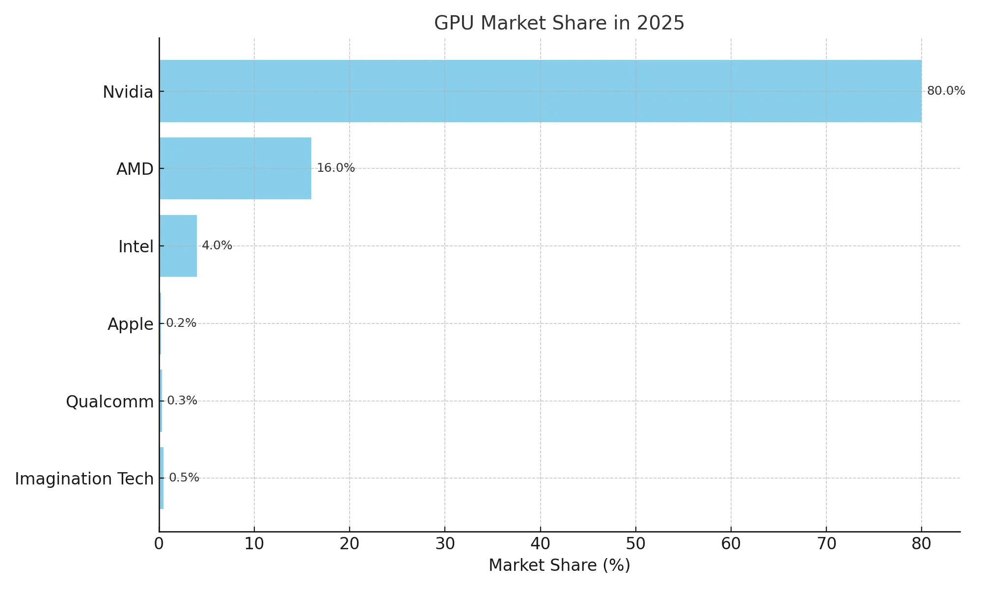 | Intel | 4% | -1% | Arc Alchemist, Xe | Presencia emergente, integración CPU-GPU |