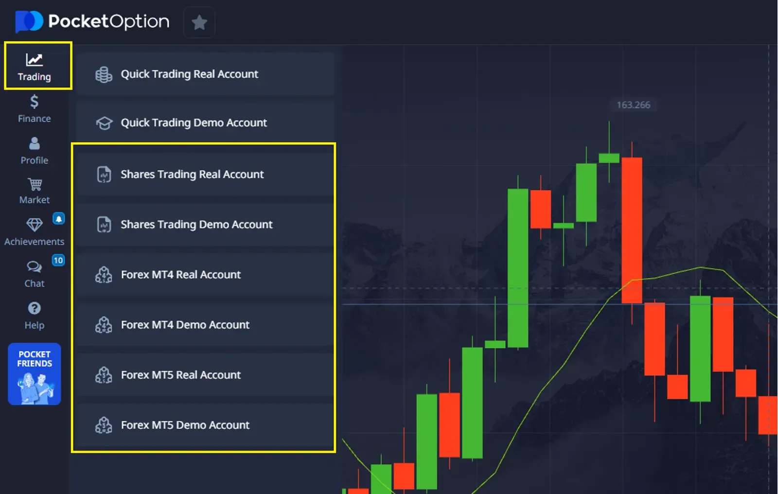 - Regístrese en Pocket Option Cree una cuenta en Pocket Option, y obtendrá acceso tanto a la plataforma web como a la integración de MT4.
