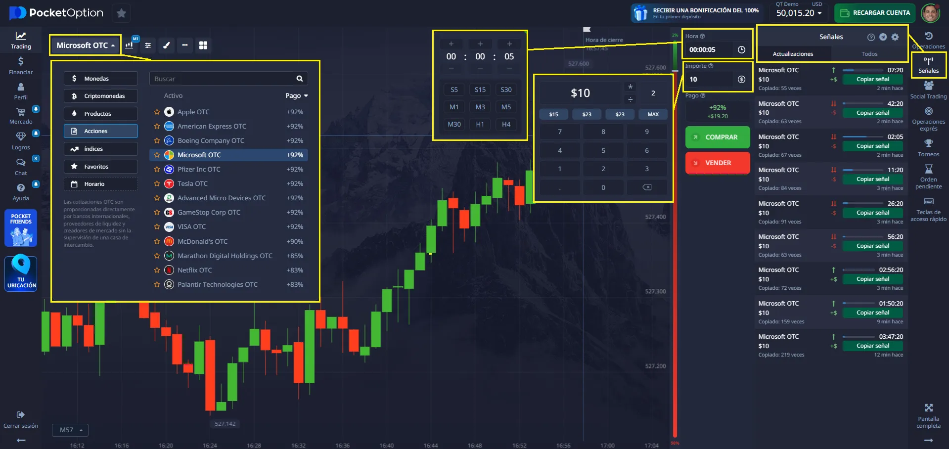 - Soporte de IA y Algorítmico: Usa las señales integradas de Pocket Option junto con tus configuraciones.