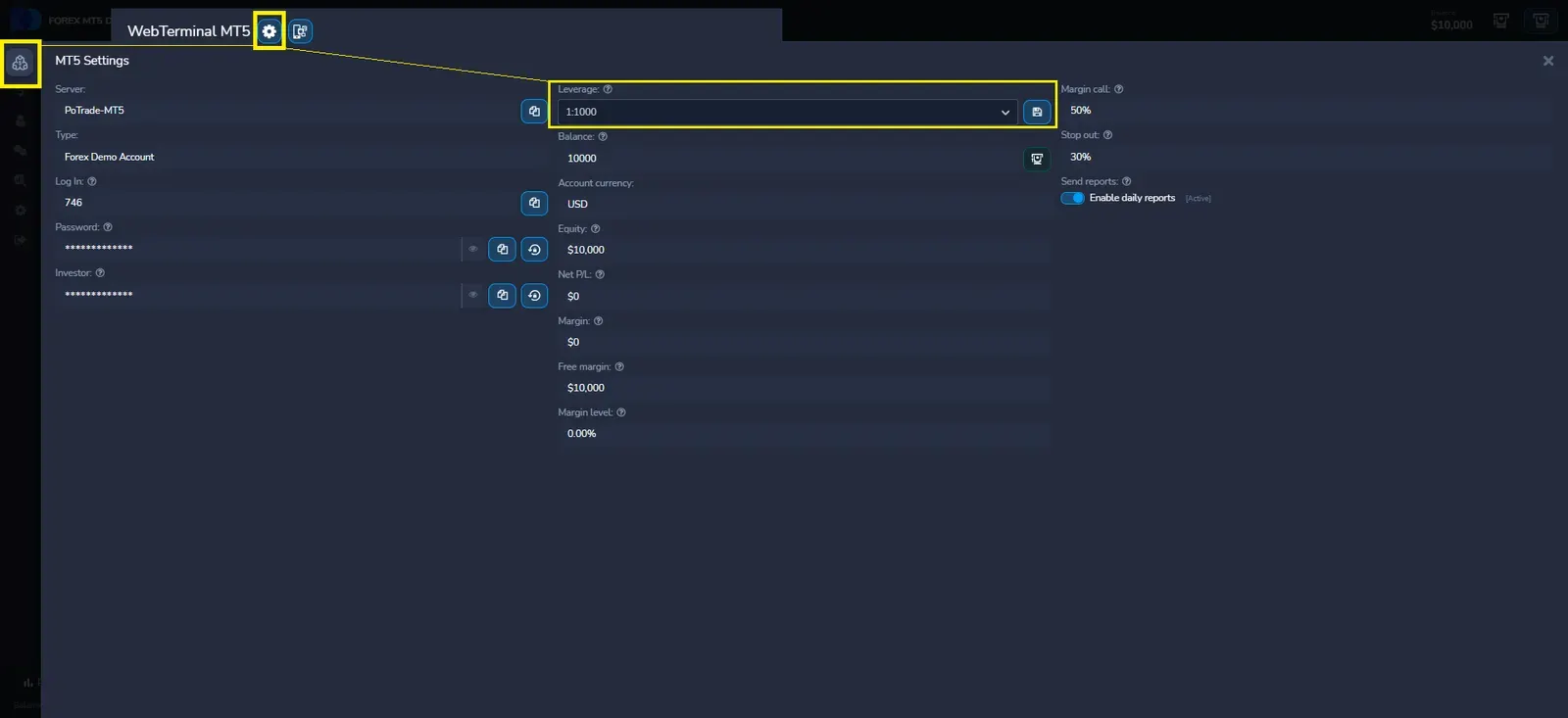 - Navegar a Configuración de Cuenta – Localiza la configuración de apalancamiento y elige tu proporción preferida (1:1 – 1:1000).