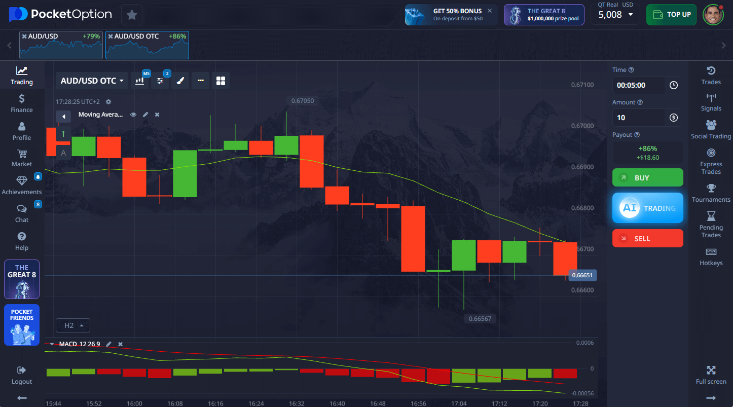 - Exemple de Trade Réel – AUD/USD sur Pocket Option