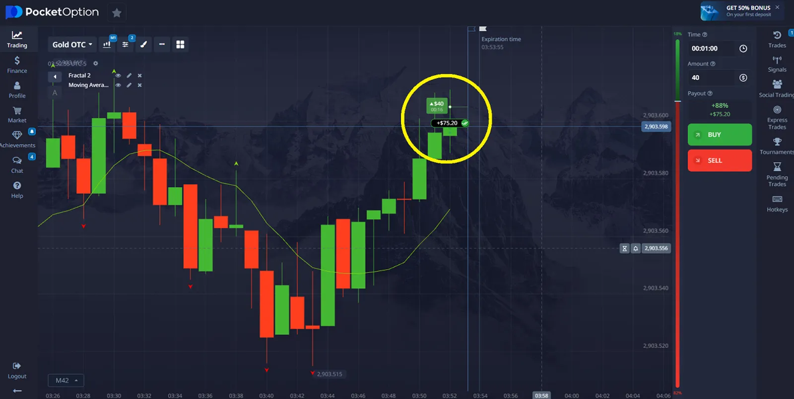 - Démarrage facile: trading de l’or sur la plateforme Pocket Option
