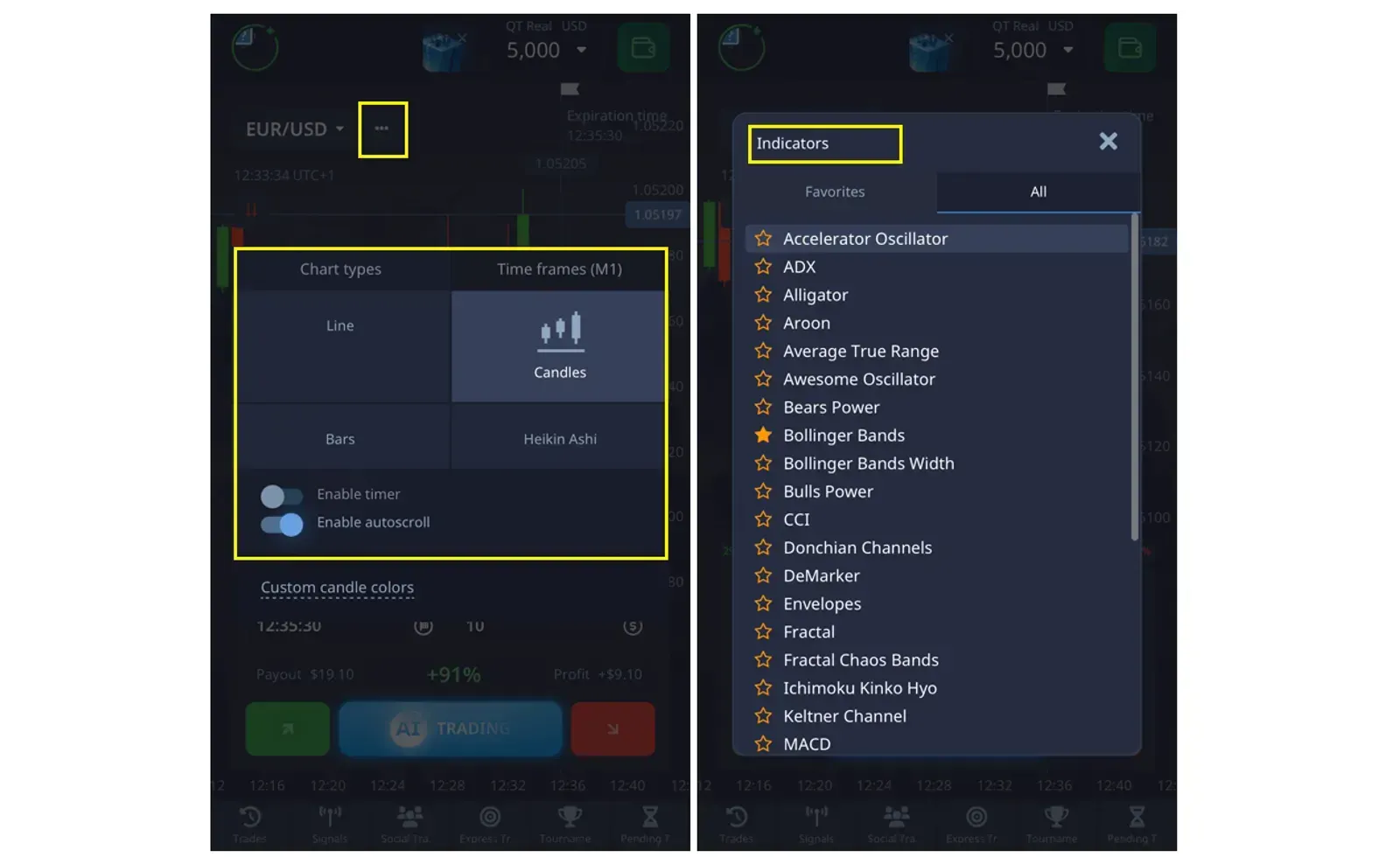 - Wybierz swój wskaźnik: Przejdź do sekcji „Wskaźniki” na platformie Pocket Option.