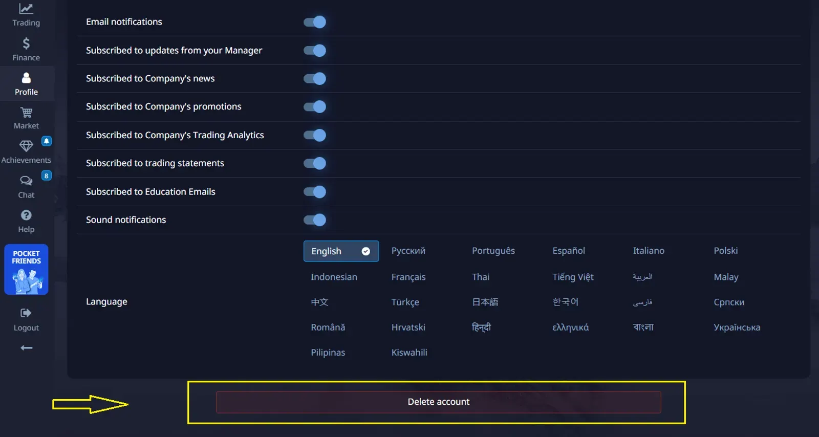 Se você não deseja mais usar a Pocket Option, pode querer fechar sua conta. O processo é simples e requer apenas alguns passos. Abaixo está um guia passo a passo sobre como fechar corretamente a conta da Pocket Option.
