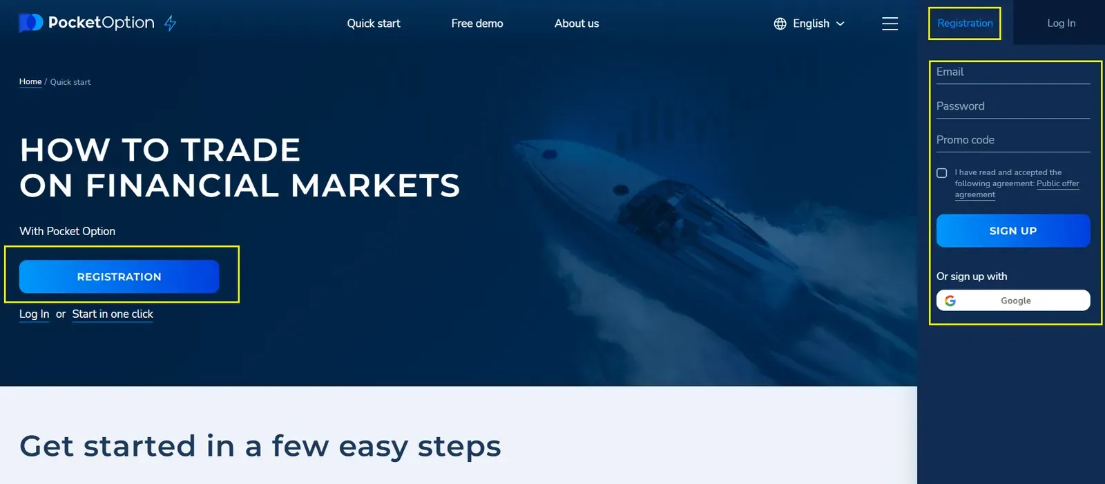 เพื่อ สร้างบัญชี Pocket Option ให้ทำตามขั้นตอนเหล่านี้: