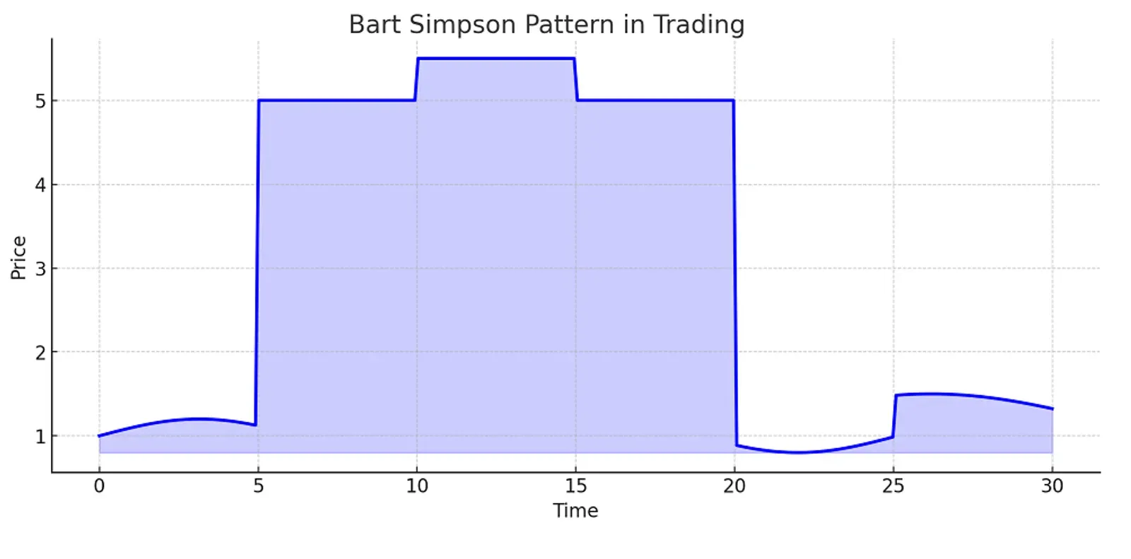 รูปแบบการเทรด bart simpson ซึ่งตั้งชื่อตามทรงผมของตัวการ์ตูนอันเป็นที่รู้จัก เป็นรูปแบบแผนภูมิที่คล้ายกับศีรษะของ Bart Simpson รูปแบบนี้มีลักษณะเด่นคือมีการพุ่งขึ้นของราคาอย่างฉับพลัน ตามด้วยช่วงของการเคลื่อนไหวทางด้านข้าง และจากนั้นก็มีการลดลงอย่างรวดเร็วกลับไปสู่ระดับราคาเดิม รูปแบบการเทรด bart simpson มักพบในตลาดคริปโตเคอร์เรนซี แต่ก็สามารถเกิดขึ้นในเครื่องมือทางการเงินอื่น ๆ ได้เช่นกัน