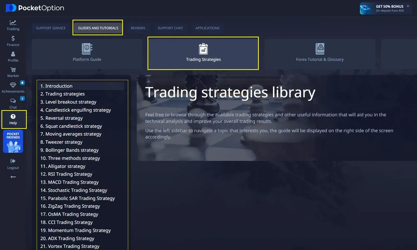 - ประเภทของแผนภูมิ: Pocket Option มีแผนภูมิหลายประเภท รวมถึงแผนภูมิแท่งเทียน ซึ่งสำคัญต่อการระบุรูปแบบเช่นรูปแบบ Bart Simpson