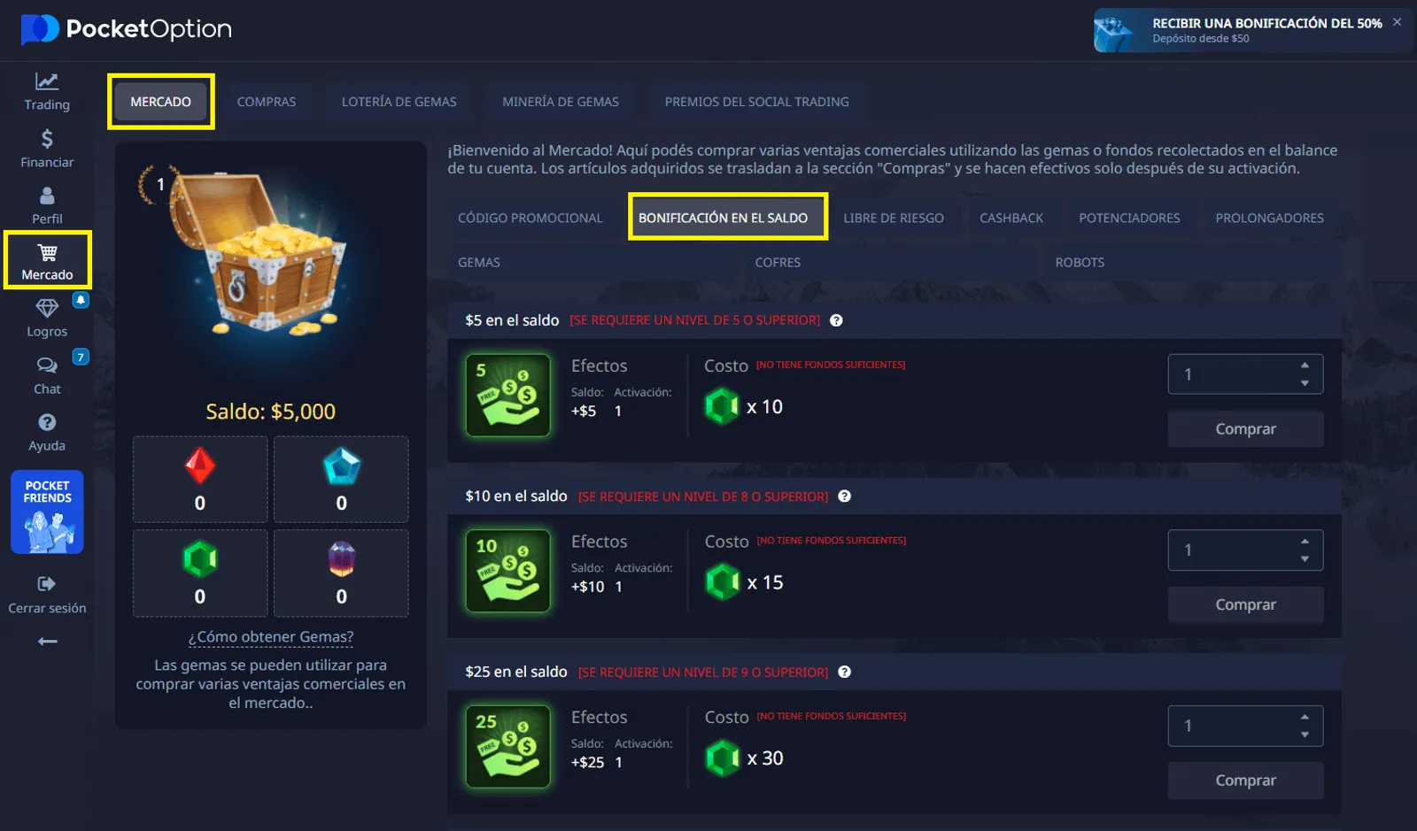 Pocket Option'da mevduatsız bonuslar mevcut mu?