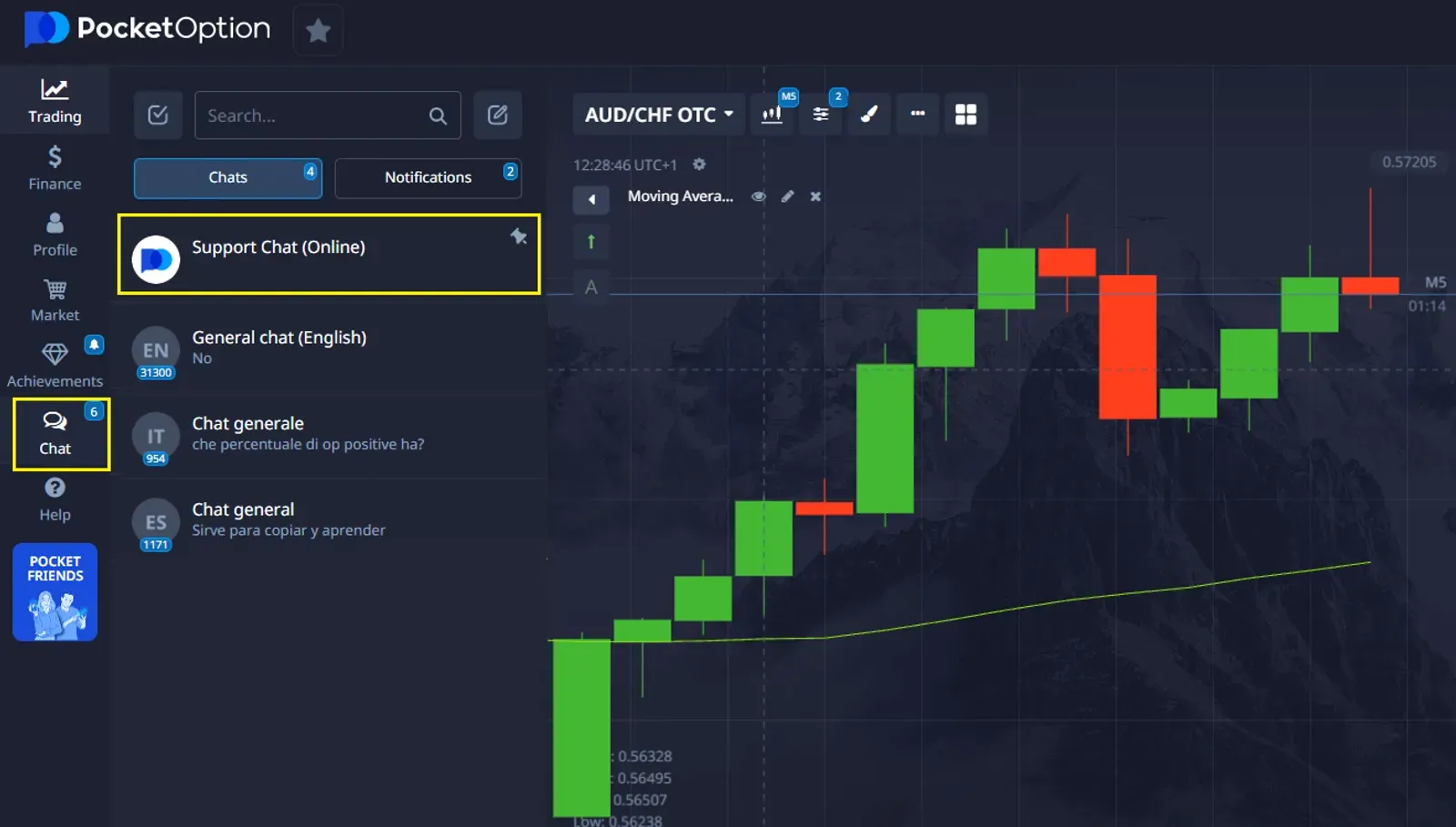 Pocket Option’da yardım almanın en hızlı yollarından biri, canlı sohbet özelliğidir. Platform, yaygın soruların geniş bir yelpazesini cevaplayabilen veya sahip olabileceğiniz herhangi bir şüpheyi açıklığa kavuşturmanıza yardımcı olabilen bir sanal asistan sağlar.