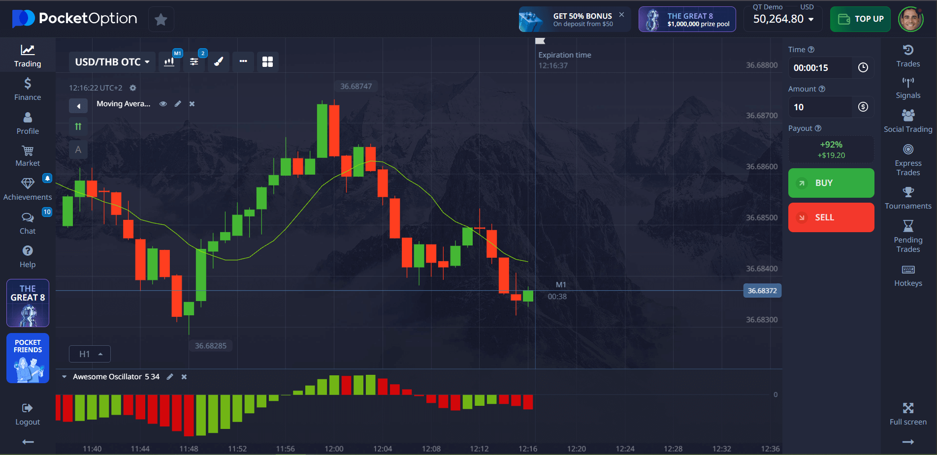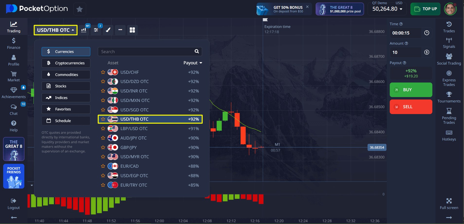 İşte Pocket Option ile USDTHB ticareti yapmanın yolu: