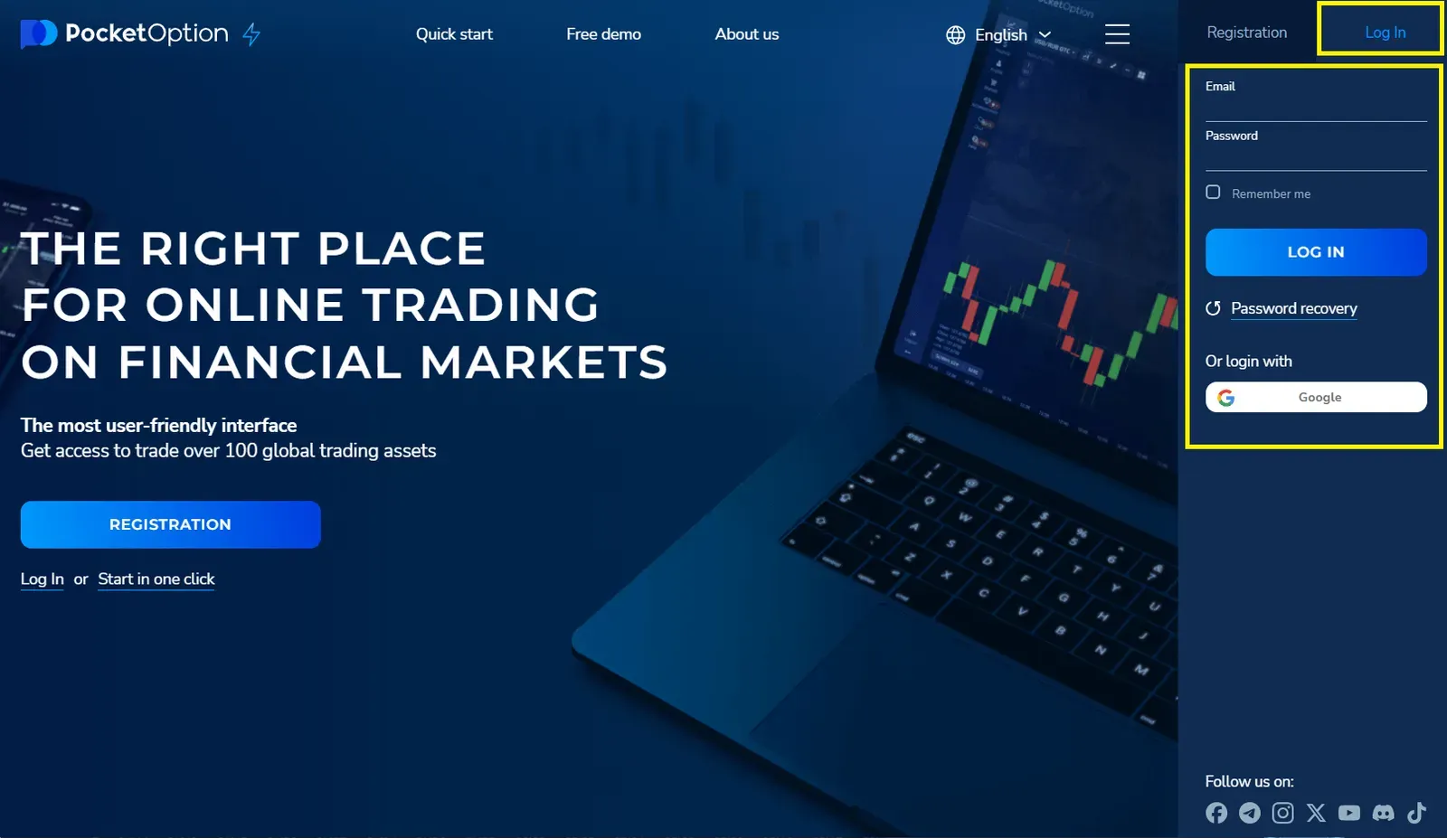 Làm theo các bước đơn giản sau để định vị tài khoản Pocket Option của bạn: