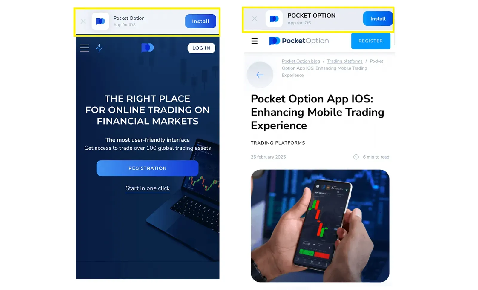 - Từ Blog này: Tải xuống ứng dụng trực tiếp từ blog Pocket Option–tìm liên kết tải xuống đặc biệt ở đầu màn hình.