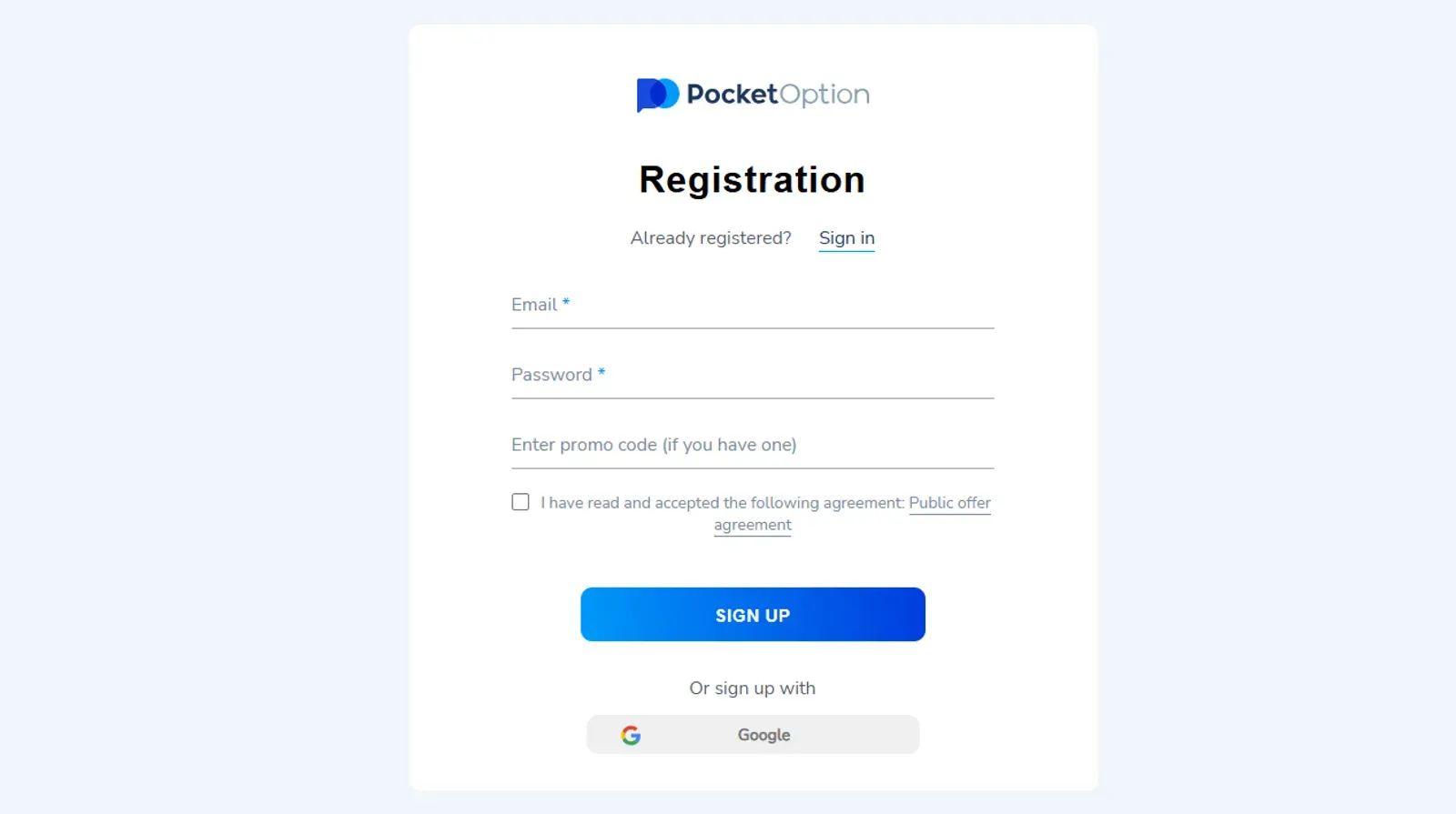 Mở tài khoản thực trên Pocket Option rất đơn giản và dễ dàng. Dưới đây là hướng dẫn từng bước để bắt đầu: