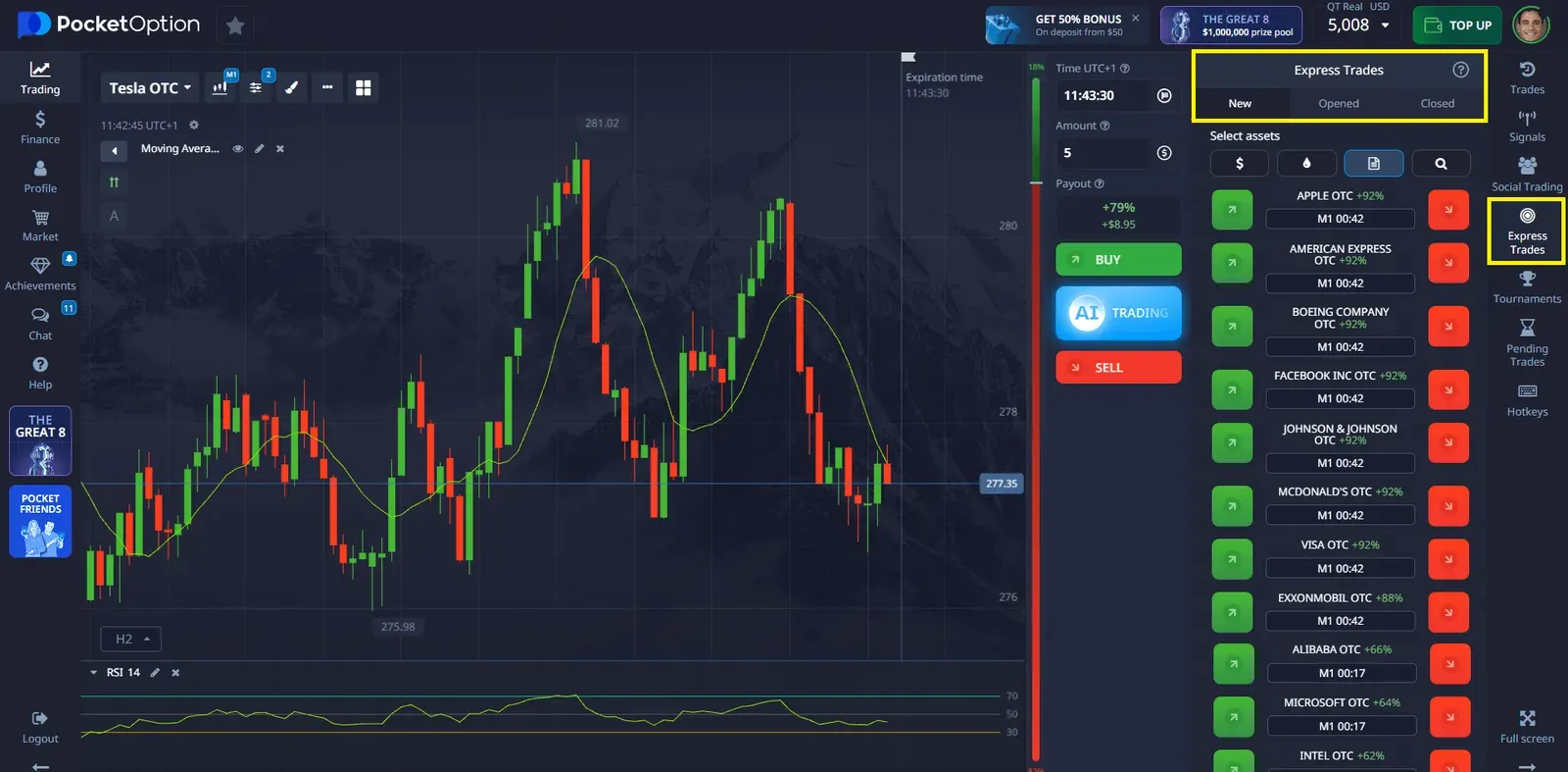 Pocket Option cũng cung cấp Giao dịch Express, với:
