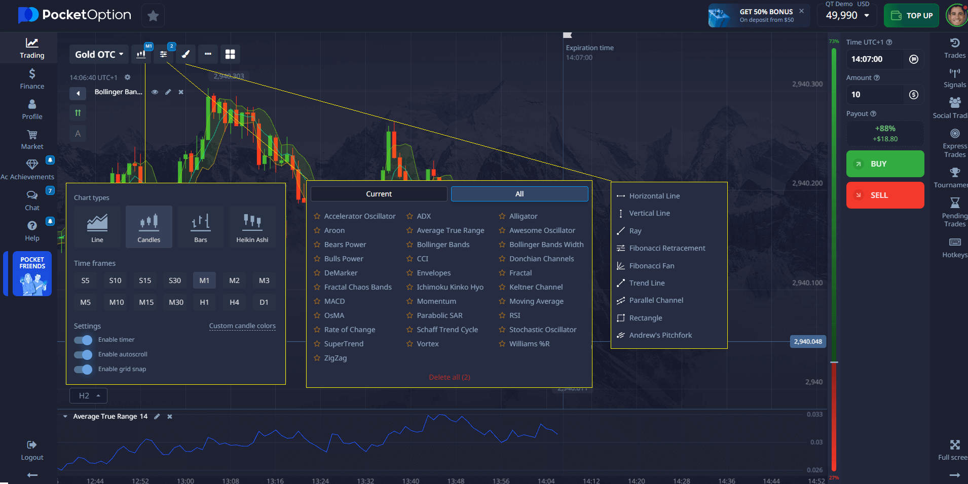 Scalping liên quan đến việc mở nhiều giao dịch ngắn hạn để kiếm lợi nhuận từ các biến động giá nhỏ. Hệ thống “Đột Phá Biến Động” hiệu quả vào năm 2025, nhờ vào khả năng thực hiện lệnh nhanh của Pocket Option. Nó sử dụng: